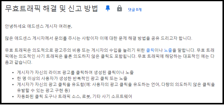 만약 무효트래픽에 관련될만한 클릭이 나오는 글이 있다면