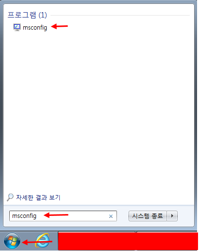 'msconfig'를 치시면 바로 검색되는 프로그램을
