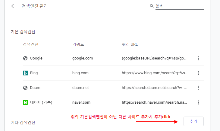 주로 많이 사용하는 검색엔진을 설정해 놓으시면