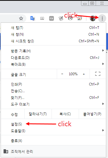 크롬 우측상단의 점3개 를 클릭하면