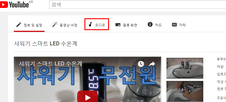 우선 영상을 업로드 하신후 BGM을 넣으려고 하시는 영상 페이지를 들어가시면