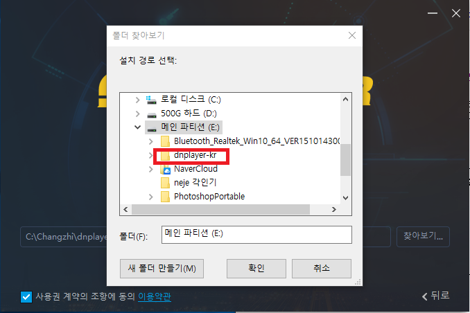 dnplayer-kr파일을 옯겨놓고 선택합니다.