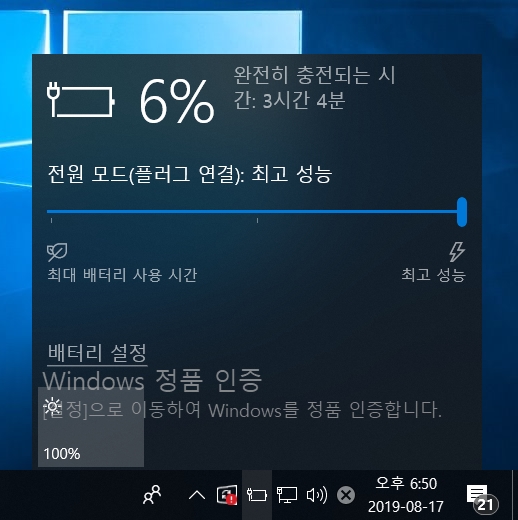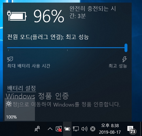 고성능 세팅으로 쭉 사용중이었는데 90%를 채우는데 2시간이 좀 안걸렸구요~