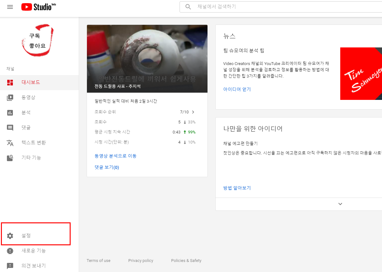 유투브 크리에이트 스튜디오 베타에서 보시면