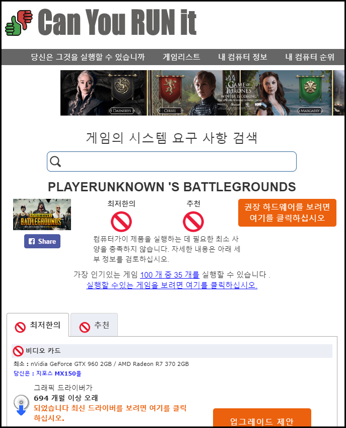 내 PC가 특정게임에 적합한 하드웨어 상태인지를 체크하는 사이트