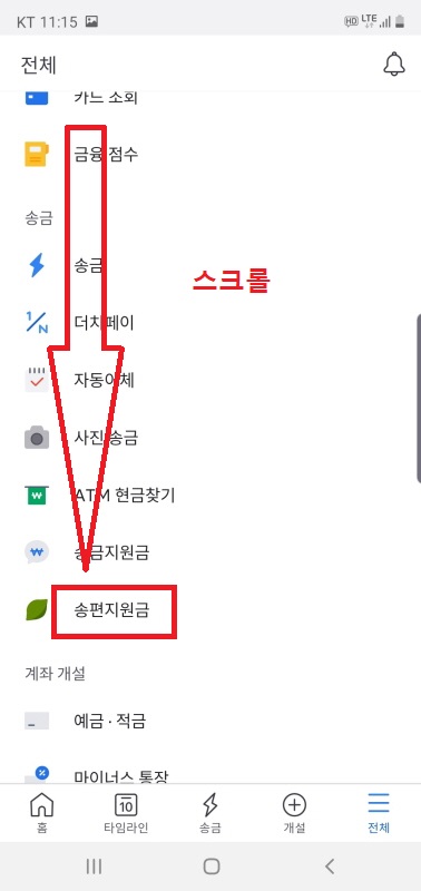 전체메뉴에서 아래로 좀 스크롤을 해보시면