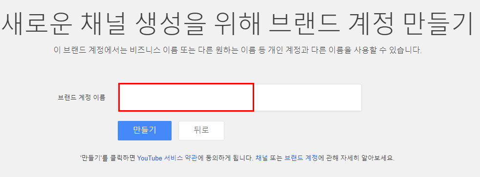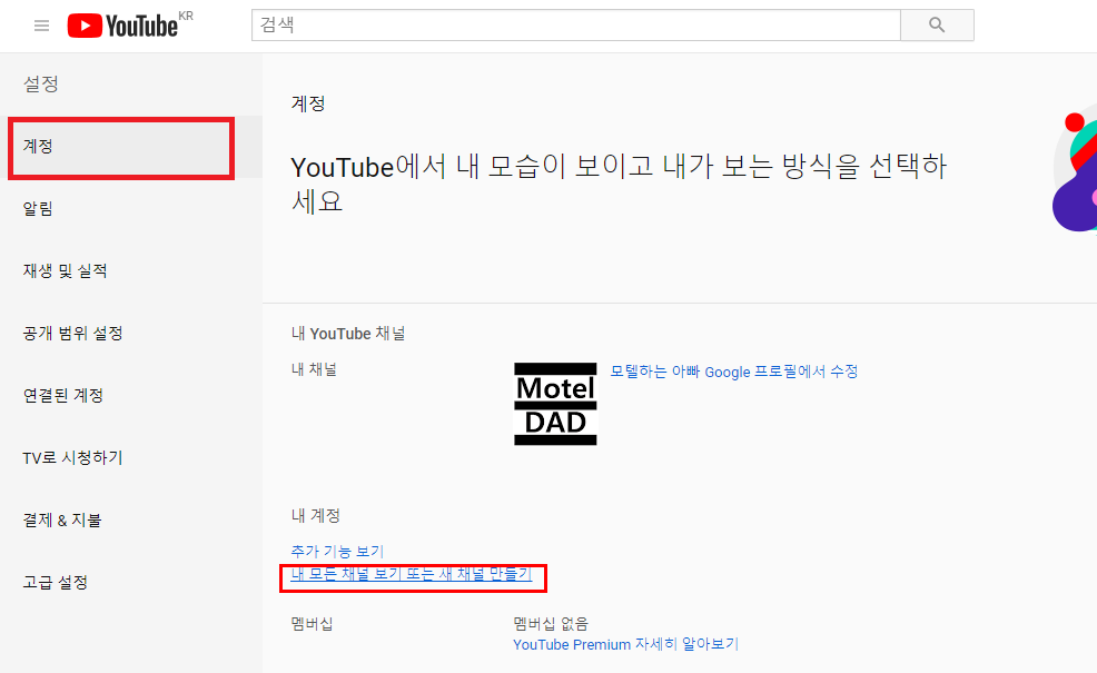 개인계정은 내 구글정보와 이름으로 채널을 개설하는방법이고