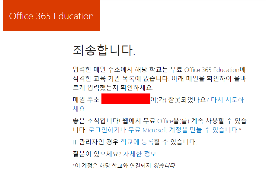 그 학교 주소를 이용하는 이메일주소를 office365에서 자동으로 인식하도록 되어 있구요...