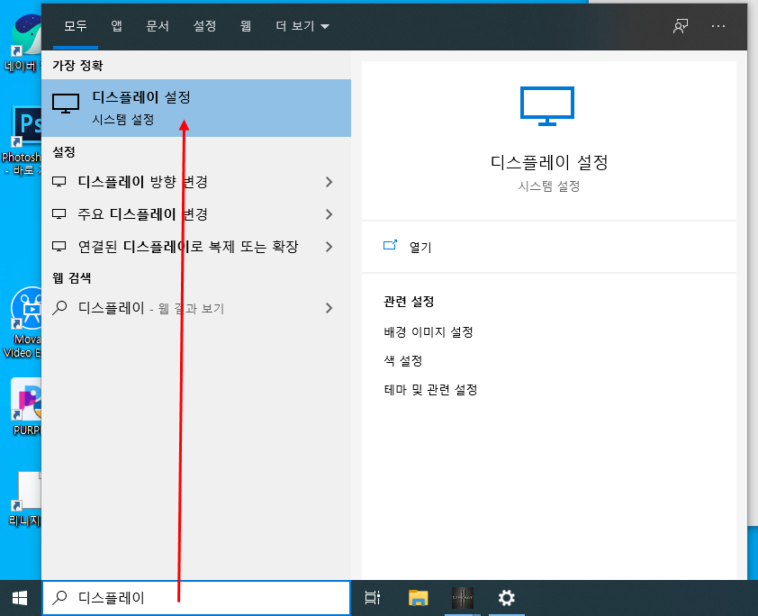 윈도우의 검색칸에 '디스플레이'라고 검색을 합니다.