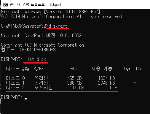 윈도우 10 - 복구파티션 삭제 방법 (삭제 안되는 파티션 삭제 방법)