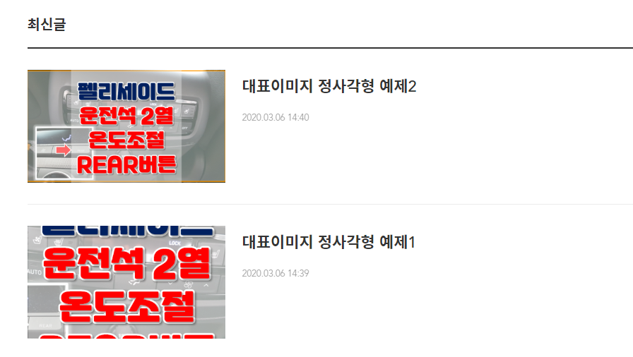 정사각형모양의 대표이미지는 글씨가 짤리게 됩니다.