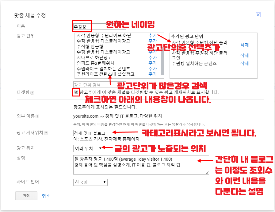 [ 애드센스] 수익단가 상승 입찰만들기 - 사용자설정채널 설정