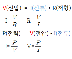 이런생각도 드는게 전력(P), 전류(I), 전압(V), 저항(R) 을 계산하는 방법입니다.
