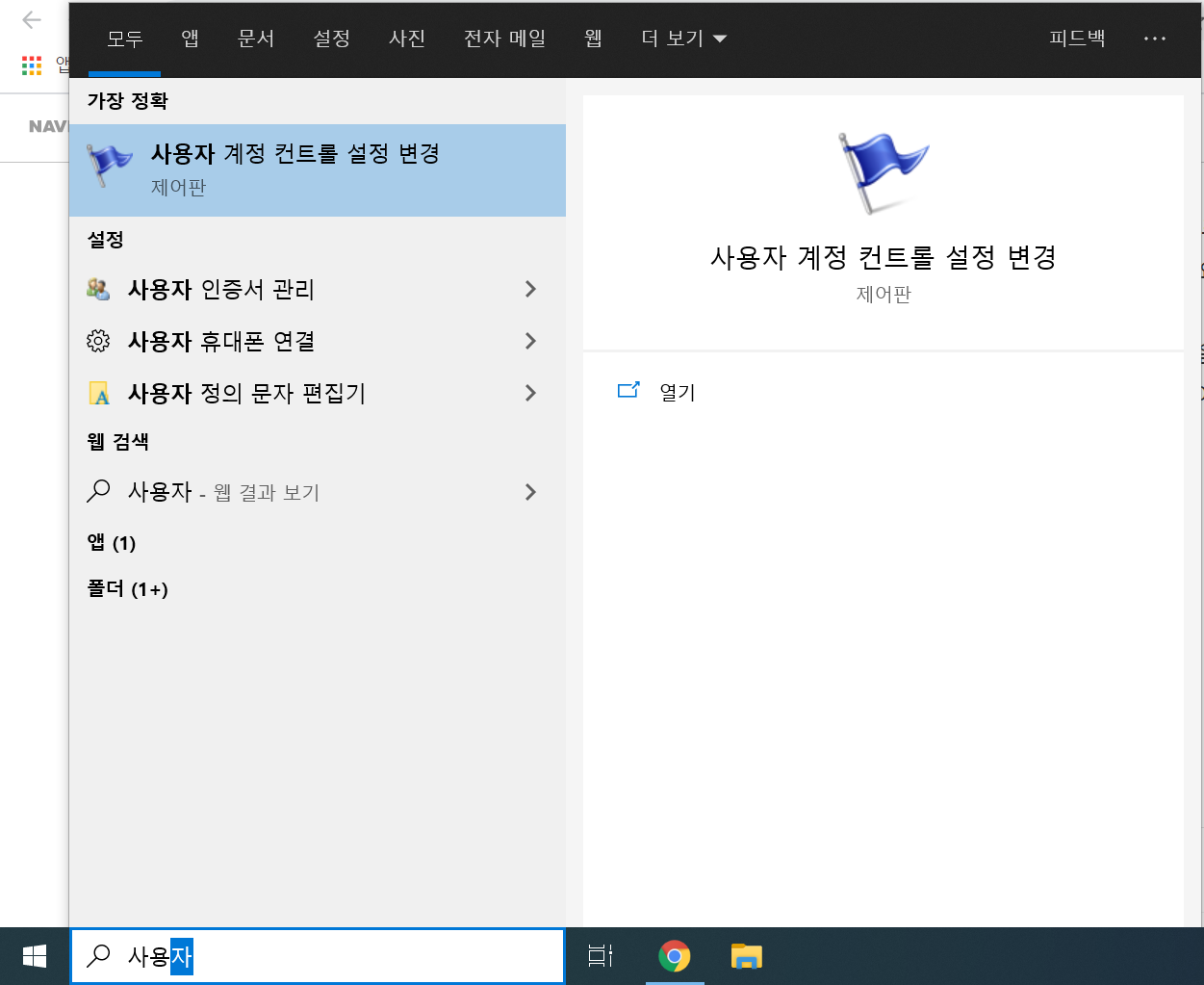 윈도우 좌측 아래의 검색칸에 '사용자 계정 컨트롤 설정 변경'을 검색해서 창을 열면 됩니다.
