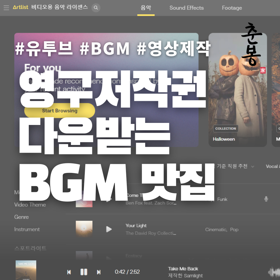 제 BGM영상도 올려보고 흥부부님의 Artlist소개영상도 올려봅니다.