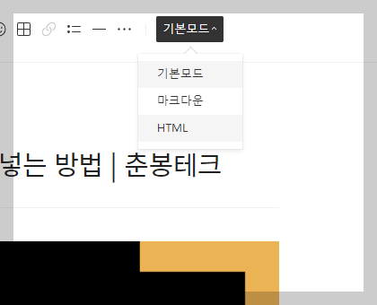 페이지 보기 모드를 HTML 모드로 변환하여 페이지의 HTML을 확인해봅니다.
