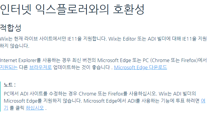 내용은 '인터넷 익스플로러에서는 wix.com으로 만든 홈페이지를 접속할 수 없다.' 입니다.