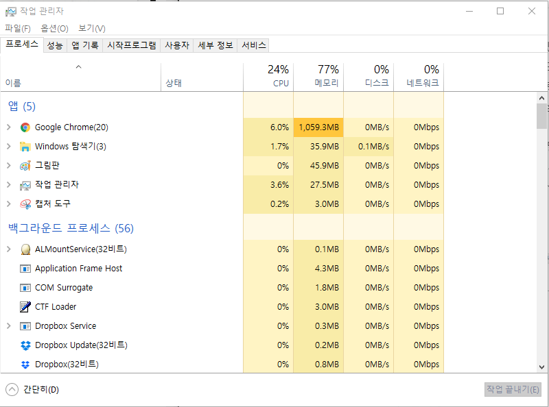 '작업관리자'를 열어주세요...
